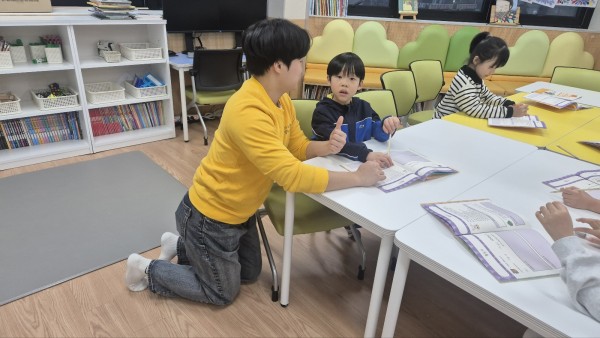 2교시(김병준): 1교시의 동화구연 내용을 토대로 학습지에서 저축에 관련한 내용을 정리하며 직접 적어보는 시간을 가졌습니다.