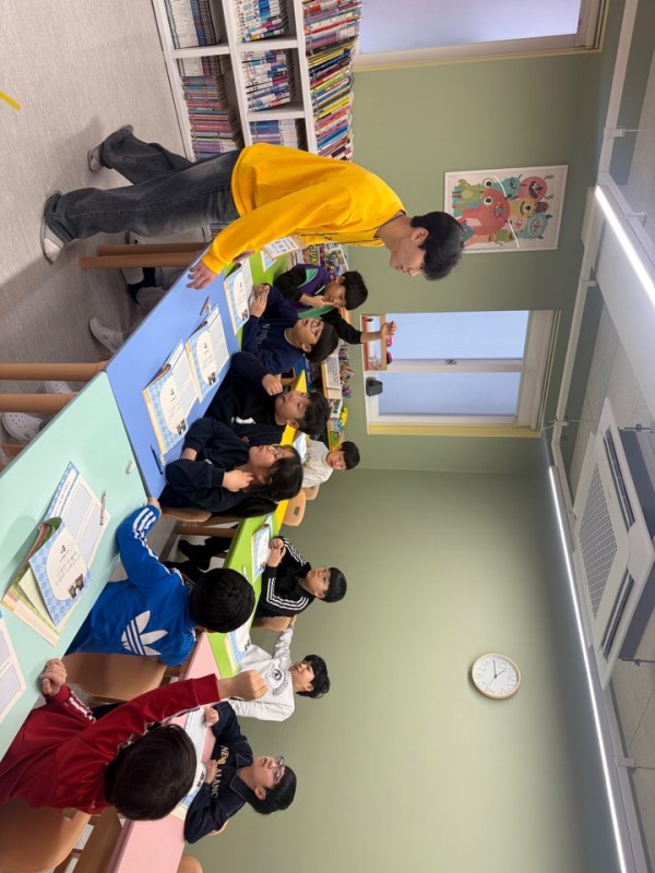 4) 교육내용 : 4차시 단정한 마을의 사쿠리니씨 이야기를 읽고 수업을 진행하였습니다. 주교사로 참여하여 아이들과 돌아가며 이야기를 읽었고, 이야기 속 내용을 활동지 퀴즈로 풀고 발표해 보았습니다. 직접 등록증을 만들어보며 아이들의 꿈이 무엇이고, 하고싶은게 있는지 물어보며 생각을 공유하였습니다.
