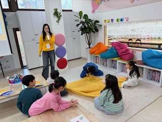 4) 교육내용 : 여섯번째 수업으로 이지연 단원이 주교사를 편지현 단원이 부교사를 맡아 수업을 진행하였습니다. 돈의 흐름에 대해 배우고, 공놀이 활동을 통해 돈의 흐름 개념을 체화했습니다. 이후에 총정리 퀴즈를 진행하며 통장에 대해 알아보았습니다.