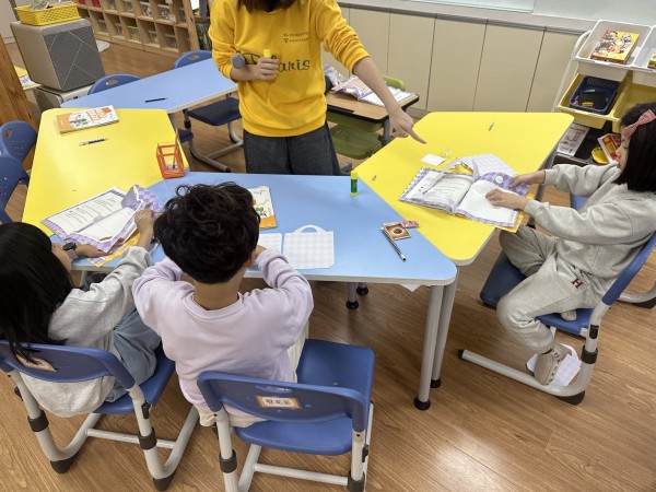 -꼬마악어의 지갑 동화를 읽으며 저축의 방법과 중요성에 대해 배우고, 퀴즈를 통해 내용을 정리해보는 시간을 가졌습니다. 동화구연 후 교재를 통해 저축을 해본 경험과 그 때의 감정을 공유하는 정리학습을 진행하였습니다.