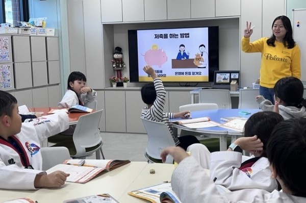 저축이 무엇인지, 왜 필요한지 천천히 설명하며 아이들과 일상 속 사례를 함께 찾아보았습니다. “로봇 장난감을 사고 싶을 때”, “부모님께 선물을 드리고 싶을 때” 등 실제로 경험할 수 있는 상황을 중심으로 대화를 나누어, 아이들이 저축을 자연스럽게 받아들일 수 있도록 했습니다. 중간중간 간단한 퀴즈를 제시해 이해도를 높이고, 아이들이 스스로 생각해보는 시간을 마련했습니다.