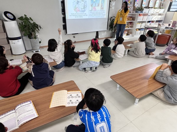 4) 교육내용 : 7차시 '꼬마악어의 지갑' 수업을 진행했습니다. 저는 주교사를, 수완 단원이 보조교사를 맡았습니다. 꼬마 악어의 지갑 이야기를 함께 읽고, 저축한 경험과 저축할 때 좋은 점과 어려운 점을 써보고 발표하는 시간을 가졌습니다. 그리고 용돈으로 물건을 사고, 저축해보는 활동을 통해 간접적으로 저축하는 경험을 할 수 있도록 지도했습니다.