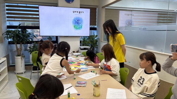 행복물고기 만들기에서는 원형 비늘에 자신이 나누고 싶은 것들을 적고, 큰 물고기 도안에 붙여서 완성했습니다. 적으면서 물질적인 것뿐만 아니라 마음과 행동도 나눌 수 있다는 것을 깨달았습니다.
