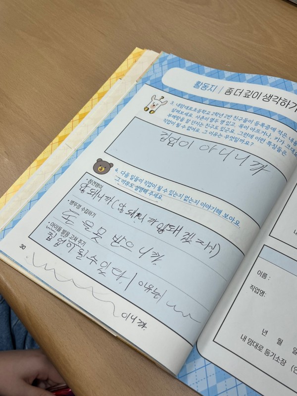책 내용도 잘 이해를 못했다고 느꼈으나 활동지 작성은 열심히 하는 것을 보니