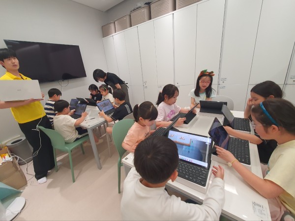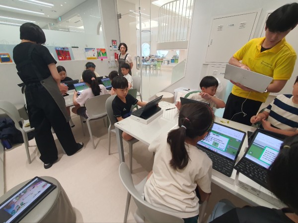 - 수업을 시작하기 전부터 아이들이 태블릿을 보고 미친듯이 흥분하고 있었다. 그런데 메타버스를 처음 해 본 탓에 여기저기서 실수나 조작 오류가 넘쳐났다. 선생도 아이들도 거의 1시간은 시행착오를 겪은 것 같다. 그래도 태블릿으로 게임을 한다는 점에서 아이들의 집중력이나 참여도가 역대급으로 높은 수업이었다. 그런데 아무래도 KB 폴라리스 측에서 메타버스 플랫폼 사용법을 더 자세하게 알려줘야 할 것 같다. 예를 들면, 아바타 의상을 변경하는 방법, 이동 조작을 터치에서 조이스틱으로 변경하는 방법, 아바타 이름 변경법 등을 추가해야 할 것 같다. 마지막으로 3가지 미니게임은 게임방식이 메타버스 플랫폼의 기본 게임들보다 더 복잡해서 그런지 아이들이 플레이하는 데 난항을 겪었다. 그래서 3가지 미니게임을 더 단순하게 만들 필요가 있어 보인다.