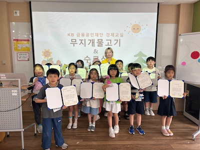 2교시는 과자파티와 함께 수료식을 진행했습니다. 과자파티는 유튜브에서 경제 애니매이션을 보며 진행되었고, 약 20분동안 과자를 먹었습니다. 과자를 다 먹은 후 수료식을 시작하였는데, 도장을 많이 모은 아이들에게는 레고를, 그렇지 않은 아이들에겐 간식을 주었습니다. 1등이 12개, 2등이 3명으로 11개를 기록하여, 3등인 도장 10개받은 아이가 서운해하여 다소 아쉬웠습니다. 다음엔 도장개수에 차등을 두지 않는 방향으로 진행해야할 것 같습니다.