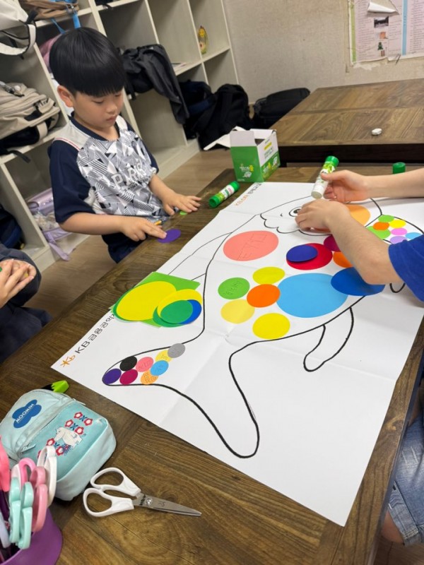 - 색종이를 활용하여 자신이 생각하는 나눠줄 수 있는 것을 색종이에 적게 하고 행복 물고기를 꾸미는 시간을 가졌음.