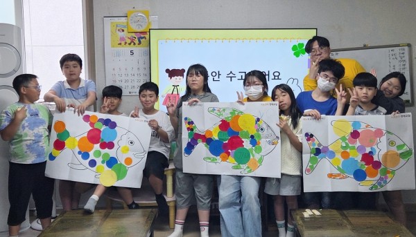 8차시동안 수업을 진행하면서 학생들과의 정이 많이 쌓여서 마지막 수업을 마친 후 시원 섭섭한 기분을 많이 느꼈습니다. 처음 많이 낯가리고 했던 학생들이 시간이 지나면서 마음의 문을 열어 좀 더 수업에 적극적으로 참여를 하는 모습을 보며 열심히 노력했던 것들에 대한 보상을 받는 기분이 들어 좋았습니다. 또한 무지개 물고기를 꾸미면서 학생들이 원하는 꿈이나 그런것들을 자세하게 듣고 자신이 나눠줄 수 있는 것이 무엇이 있는지 고민하는 모습을 보며 무궁무진한 학생들을 가까이에서 볼 수 있어 좋았던 것 같습니다.