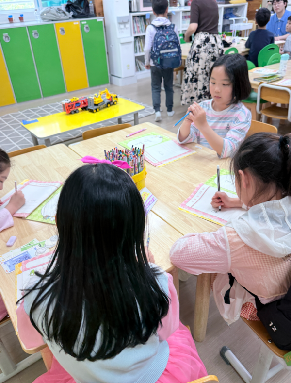 이론수업이 끝난 후에는 빙고게임과 그림일기 활동을 진행했는데요, 빙고게임의 규칙을 제대로 이해하지 못하거나 한번도 해보지 못한 친구들이 생각보다도 많아서 시간이 소요되었던 것 같습니다. 또한 그 후에는 그림일기 활동을 진행하였는데, 피드백 결과 그림일기를 완성한 후 한 명씩 발표하는 부분이 빠진 것이 아쉽다는 피드백을 받았습니다. 따라서 앞으로는 이러한 세세한 부분을 더욱 명확하게 구상하고 계획할 필요성을 깨닫게 되었습니다.