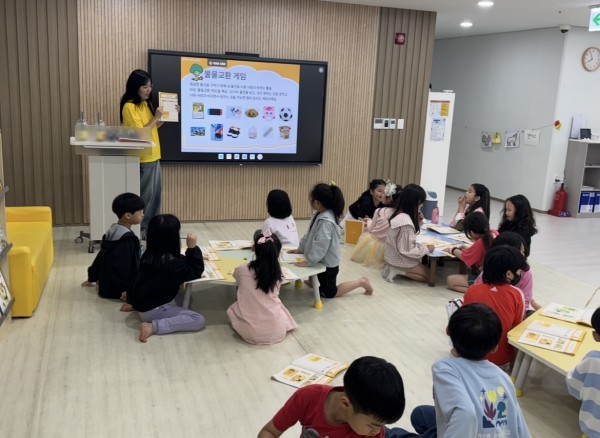 -2교시 (백지연): 물물교환 게임을 진행하며 화폐의 중요성을 학습함. 화폐의 종류를 알아보며 직접 머리띠를 만들고, 돈을 완성하고 세어보는 게임을 진행함. 이를 통해 화폐가 어떤 역할을 하는지 몸으로 체험할 수 있도록 유도함.