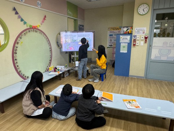 아이들과 함께 「꼬마 악어의 지갑」 동화를 읽어보며 저축의 의미와 필요성에 대해 이해하였습니다. 종이책을 준비하여 호기심을 자극했고 적절한 발문을 제시하여 집중할 수 있도록 도왔습니다. 교재의 활동지를 작성하며 저축한 경험을 나누고 저축을 해야 하는 이유에 대해 학습하였습니다.