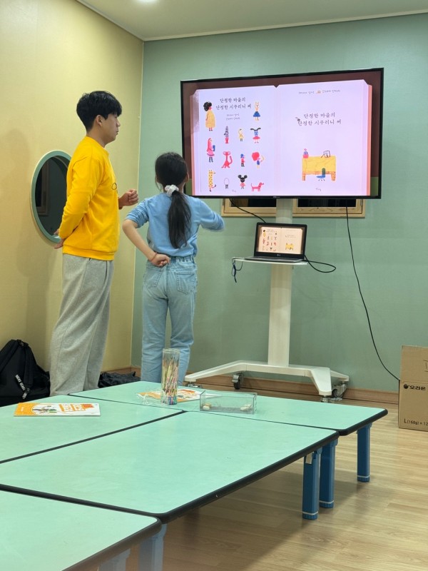 단정한 마을의 단정한 시쿠리니씨 동화를 아이들에게 구연했습니다. 등기소, 등기처럼 생소한 단어들을 풀어서 설명했고, 중간중간 아이들의 이해도를 확인하는 퀴즈를 내며 아이들과 재밌게 동화를 읽었습니다.