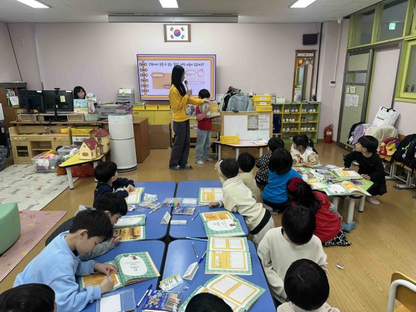 주로 이야기를 들려주는 차시에 주교사로 수업을 진행했는데 늘 걱정과 달리 아이들이 이야기에 흥미를 가지고 집중하는 것을 볼 수 있어 스토리텔링으로 진행하는 수업이 효과적이라는 생각이 들었습니다. 퀴즈를 진행할 때 분위기가 과열 됐는데 이때 아이들을 진정 시키고 이어가는 게 조금 힘들었습니다.