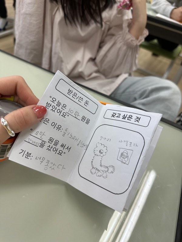 생각보다 아이들이 용돈기입장이 뭔지 모르는 친구들이 많아서 무엇인지 알려주었고 , 앞으로 용돈을 받으면 어떤 항목에 뭘 써야하고 저축을 어느정도 해야되는지 교육했습니다 아이들이 앞으로 용돈을 효율적으로 쓸 것이라 기대됩니다
