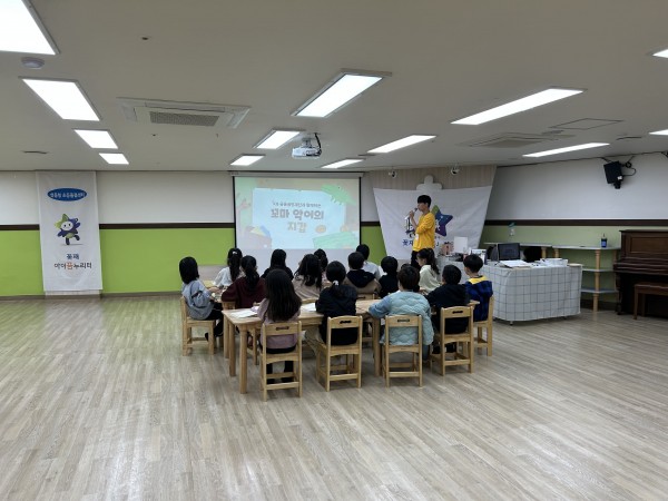 1~2교시(이하언) : 꼬마 악어의 지갑 이야기를 아이들에게 읽어주었습니다. 이야기의 악어 친구들을 꽃재아이꿈누리터 친구들의 이름으로 바꾸고, 주인공의 대사는 원하는 학생들이 번갈아가며 한번씩 읽도록 하였습니다. 아이들의 이름을 넣어 수업을 하고, 추후 독서 내용을 가지고 간단한 퀴즈를 풀어보니 아이들이 보다 재미있게 수업을 들었던 것 같습니다. 시쿠리니 이야기보다 쉽고 재밌는 이야기이기도 해서 아이들이 흥미를 잃지 않고 수업이 잘 진행되었습니다. 이후 활동지를 채워넣고 의견을 들어보는 시간을 가졌습니다. 동화구연 수업이 끝나고 이전 6차시 수업때 못했던 총정리 퀴즈를 풀어보았습니다.