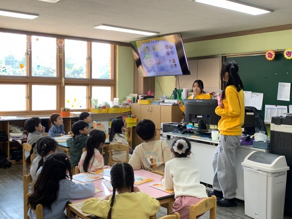 = 학교와의 사전 조율로 1회차를 2수업으로 나눴는데, 아이들이 호응해줘서 다행이었습니다. 수업 시간 경영이 생각보다 어려웠습니다. 두 번째 만남이어서 그런지 아이들이 더 적극적으로 참여해주었습니다. 머리띠를 만들고 옹기종기 앉아있는 아이들의 모습이 정말 귀여웠습니다. 아직 글씨를 모르는 친구가 있어, 최대한 쉽고 상냥하게 알려주니 처음에 소극적이던 아이가 점점 용기를 내는 모습에서 교육적 뿌듯함을 느꼈습니다.
