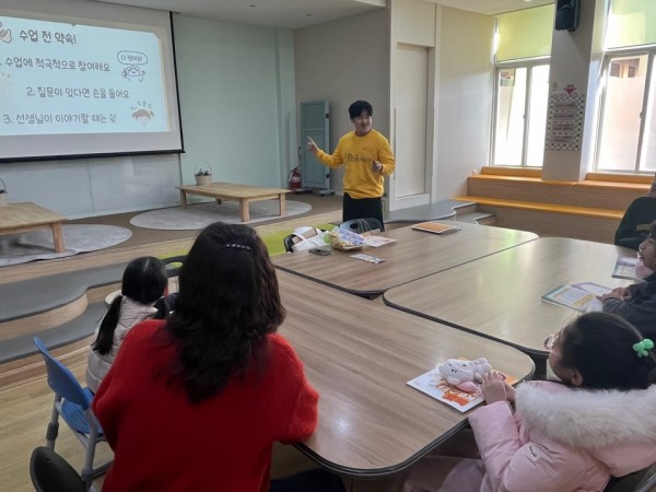 1교시(김낙현) 꼬마 악어의 지갑 이야기를 동화구연 하였는데, 아이들을 집증시키기 위해 큰 동작과 아이들의 참여를 유도하였습니다.