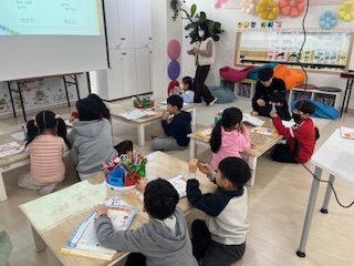 4) 교육내용 : 네번째 수업으로 이지연 단원 혼자 수업을 진행하였습니다. 시쿠리니씨 동화 구연을 진행하였습니다. 동화책을 다 읽고 난 후, 직업에 대해 아이들과 함께 이야기를 나누고 등록증을 만들어 발표하는 시간을 가졌습니다.