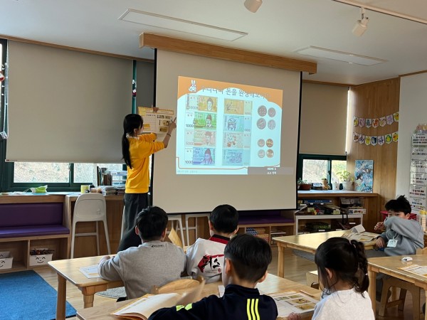 아이들의 활발한 참여 덕분에 원활한 강의 진행이 가능했음. 특히 갖고싶은 물건을 고르고 카드를 교환하는 물물교환 활동에 큰 흥미를 가졌음. 다만 화폐 작성 및 모형돈을 뜯는 시간이 오래걸려 돈 세기 게임에 할애할 수 있는 시간이 부족하여 아쉬웠음. 아이들의 활발한 발표 및 참여와 글쓰기 활동에 시간이 오래걸린다는 점을 고려하여 다음 차시 수업을 준비하려 함.