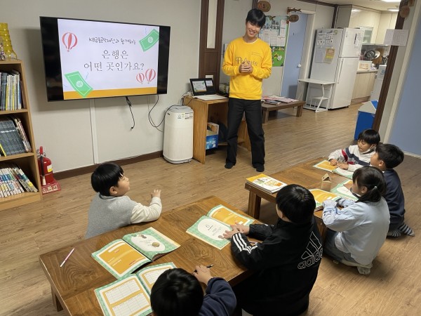 - 아이들에게 어떤 은행이 있는지 혹은 알고 있는 은행에 대해 물어보고 한 명씩 발표하는 시간을 가졌다.