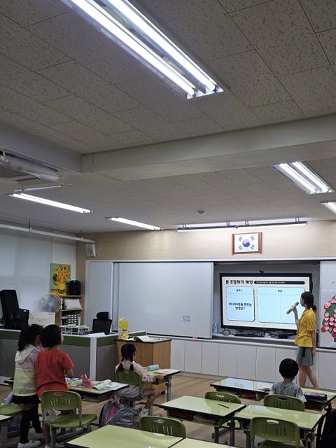 활동내용: 오늘은 3차시 주제인 똑똑한 소비에 대한 수업을 진행하였고 아이들과 현명하게 돈을 쓰는 방법을 배워보는 시간을 가졌습니다. 같이 퀴즈를 풀어보면서 돈의 종류와 크기를 알아보았고 물건의 가격을 비교해 보며 물건을 살 때 왜 고민해야 하는지 함께 생각해 보았습니다. 또한, 돈을 쓸 때 어떤 생각을 해야 할지 구체적으로 배워보았고 돈 조합하기 게임을 통해 아이들이 직접 돈을 계산하고 사용하는 연습을 할 수 있었습니다.