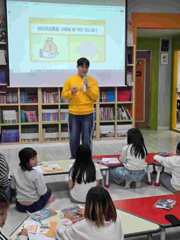 1교시에는 아이들에게 저축이 무엇인지 알려주고, 단순히 저금통에 넣는 것이 아닌, 은행에 넣을 시에 이자에 대해 설명해주었습니다. 엄마돈 아가돈이라는 표현을 쓰며, 아이들이 보다 더 쉽게 이해하는 것을 보았습니다. 또한, 저축을 한 뒤에 무엇을 하고 싶은 지 등을 물어봐 참여동기를 향상시켰습니다.