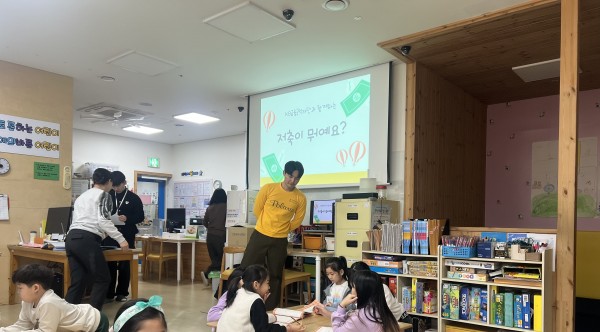 4) 교육 내용 : 5차시 "저축이 뭐예요?" 문예성(수업진행), 김태웅(수업보조)