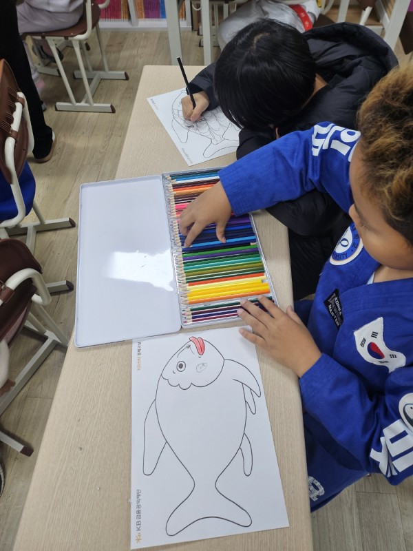무지개 물고기를 다같이 읽어 보았는데, 한줄씩 잘 읽어주고 집중을 잘 해주었습니다. 많은 아이들이 이 책을 읽어봤던 경험이 있어서 독서활동이 수월했습니다.