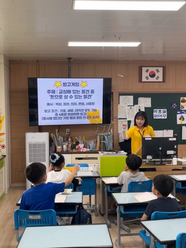 - 2교시: 교실 안에 있는 것 중, 살 수 있는 물건을 25개 선정하여 빙고 게임을 진행했습니다. 시간이 촉박하여 처음에는 3줄 빙고로 시작했으나, 아이들이 활발하게 활동에 참여해주어 4줄 빙고까지도 진행했습니다.