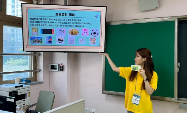 수업내용 : 돈에 없을 때 불편한 점을 물물교환을 통해서 알아보았다. 물물교환 게임을 통해 돈이 필요한 이유를 알아보았다. 화폐 머리띠를 만들어 돈계산을 하며 돈에 익숙해졌다.