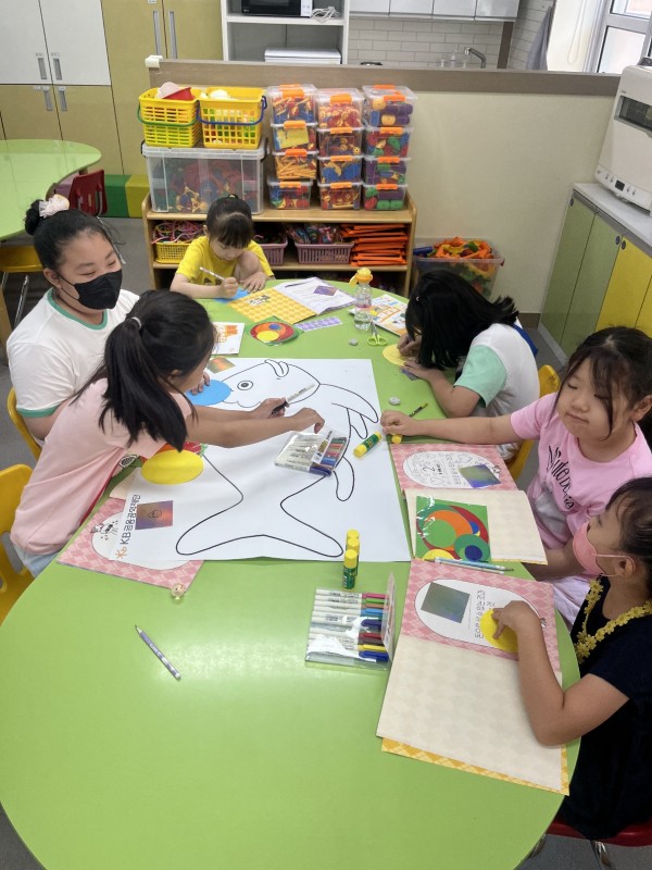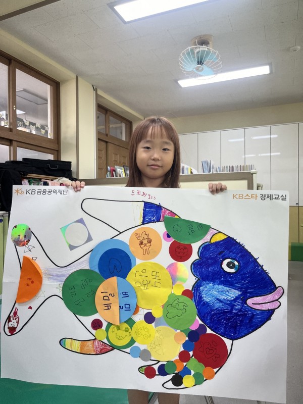 수업내용 : 무지개 물고기 동화책을 읽고 책 내용을 정리하는 퀴즈를 풀며 나눔의 의미를 이해하는 시간을 가졌습니다. 자신이 가진 소중한 것을 떠올리고, 그 중 나눌 수 있는 것으로 행복 물고기를 채우는 모둠활동을 하며 함께하는 즐거움을 깨닫는 시간을 가졌습니다.