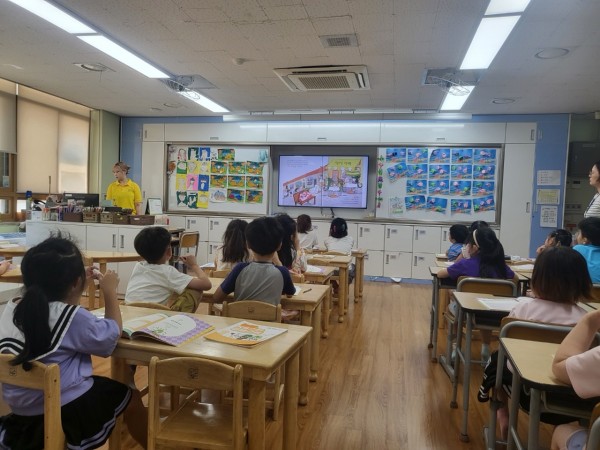 1교시는 꼬마악어의 지갑이라는 책을 읽어주고 책 내용이해 점검을 위한 퀴즈 게임을 진행했습니다. 책을 읽으면서 중간중간 전 내용을 상기시켜주면서 아이들이 끝까지 책에 흥미를 느낄수 있도록 노력했습니다.