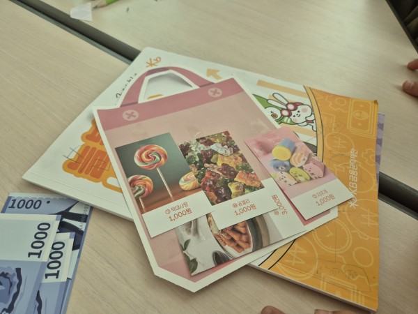 인당 2만원 용돈을 주고 주사위를 굴려서 갖고 싶은 물건이 나오면 구매하는 게임을 진행하고