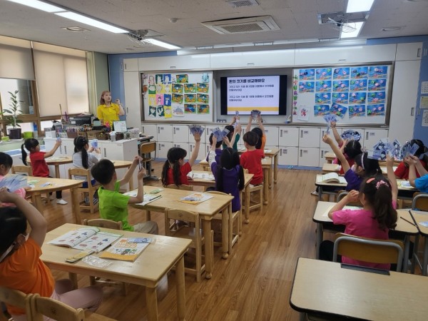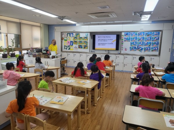 2교시에는 본격적으로 물건의 가격을 보여주고 돈으로 조합하는 게임을 진행했습니다. 교안에는 팀으로 게임을 진행하게 되어 있었지만 돌봄교실 특성상 중간에 오고가는 학생들이 있어 팀이 아닌 개인전으로 방식을 바꿨습니다. 답을 아는 학생은 교구 지폐로 구성을 만들고 발표를 통해 구성을 설명하도록했습니다. 만약 여러가지 방법으로 조합을 만들수 있는 경우에는 조합을 만들수 있는 경우가 2가지 있으니 선착순으로 발표하도록 진행했습니다. 예를 들어 만원의 경우 3가지 조합이 있는데 이미발표한 친구랑 같지 않은 다른 방법 알고 있는 친구 있어요? 이런식으로 다양한 조합방법을 개인전으로도 경험할수 있도록 해주었습니다. 그 후 마무리 시간으로 갖게된 그림일기 쓰는 시간을 주고, 일부 친구들의 발표를 들으며 마무리했습니다. 그림일기를 쓸 때 한글을 어려워하는 학생들은 함께 글씨를 써 주거나 그림만 그려셔 그 그림이 어떤 내용인지 설명하도록 하는 방식으로 발표하도록 지도했습니다.