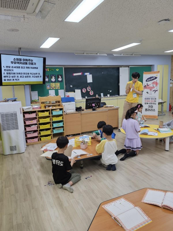 2교시: 우유팩저금통을 만들어보며 자신이 저축을 통해 가장 해보고 싶은 것을 생각해보는 시간을 가졌습니다.