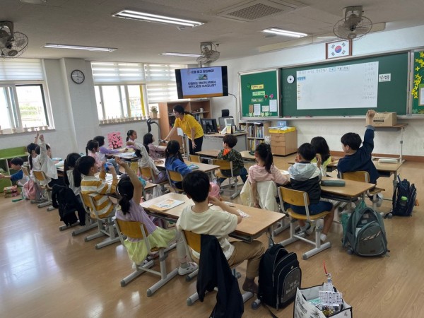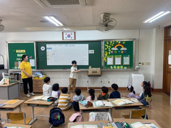아이들이 직접 앞에 나와 넌센스 퀴즈를 내보는 경험을 하며 자신감을 가질 수 있도록 지원했습니다. 아이들의 말을 끝까지 잘 들으며 아이들이 자신의 생각을 자신감 있게 표현할수 있도록 허용적인 분위기 속에서 수업을 진행했습니다.
