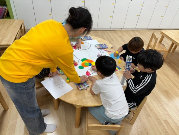 1교시는 ‘무지개 물고기’ 이야기를 듣고 활동지를 작성해보는 시간을 가졌습니다.