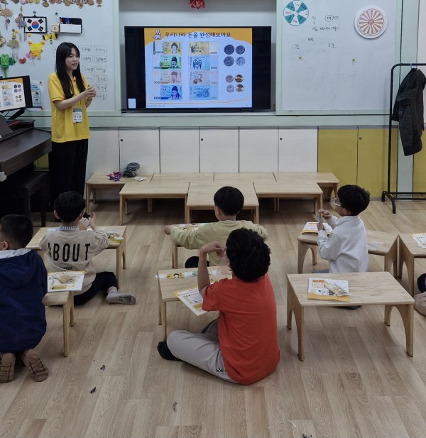 2교시 - 교재에 첨부되어 있는 교육용 화폐를 가지고 화폐에 대한 수업을 진행했습니다.