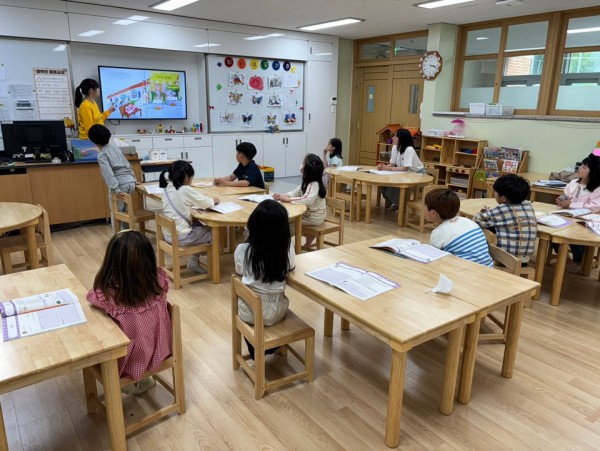 1교시는 ‘꼬마 악어의 지갑’ 이야기를 듣고 이야기에 대해 질의응답하는 시간을 가졌습니다.