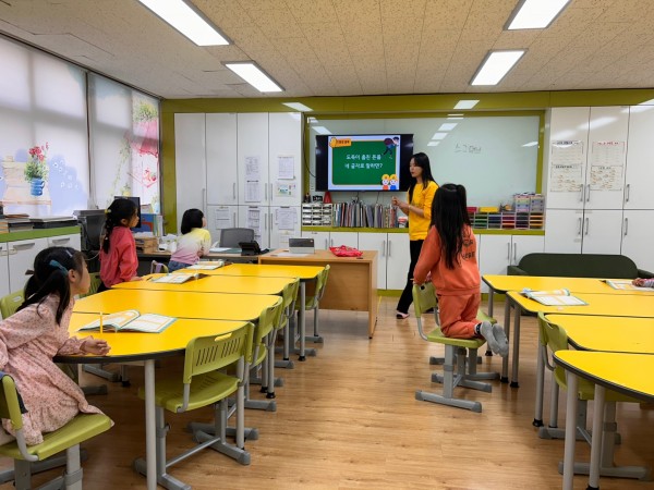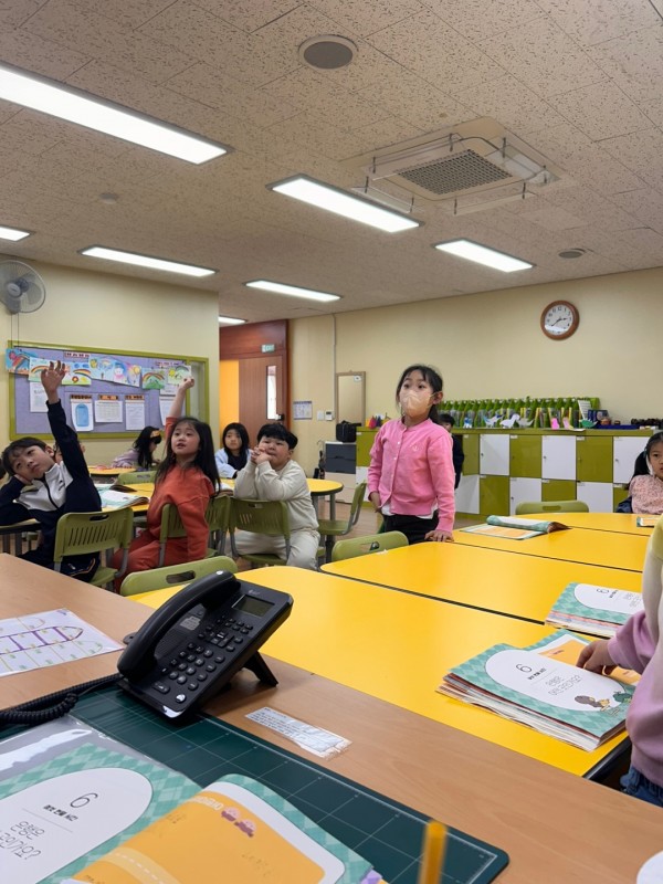 2교시에 전에 만들었던 통장을 활용하여 게임을 진행하였다. 시작하기 전에 게임의 규칙을 알려주고 마이쮸를 보상으로 이야기하여 아이들의 사기를 높혔다. 이선우 단원이 3,2,1를 외치며 동시에 아이들이 대답할 수 있도록 진행했다. 각자 문제를 맞출 때마다 100원씩 작성하며 마지막에 합산하여 보상을 주었다. 주변을 정리하며 활동을 마무리 하였다.