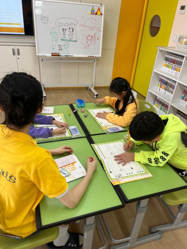 2교시: 앞선 시간에서 배운 내용들을 바탕으로 조를 나누어 퀴즈를 통해 다양한 방법으로 화폐를 조합하여 정해진액수를 만드는 게임을 진행하였습니다. 앞선 시간에서 다양한 방식으로 화폐를 조합하는 법에 대해 배웠음에도 불구하고 아이들이 화폐를 조합하는 다양한 방식들에 대해 온전히 습득이 이루어지지 않아 한정된 방법들로 화폐를구성하는 경향이 있었습니다. 이후에 경제활동그림일기 활동을 하였는데 여전히 아이들이 그림일기를 작성하는방식에 어려움을 느꼈습니다. 그렇지만 지속적으로 아이들을 격려하면서 진행을 하여서 시간이 지날수록 아이들의 적극도가 높아졌습니다.