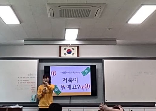 장하윤 단원이 보조를 맡아주었습니다. 학생들에게 저금통 교구와 색연필 등을 나누어주었습니다. 저금통 활동 시 저금통에 그릴 그림들을 컴퓨터로 찾아주거나, 다 꾸민 학생들의 저금통을 만들어주며 수업이 원활하게 흘러갈 수 있도록 도와주었습니다.