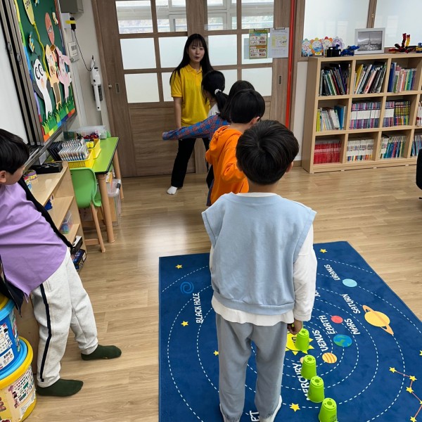 저축과 저금이라는 단어를 이용해서 청기백기 점프놀이를 접목해서 즐거운 게임을 진행했습니다.