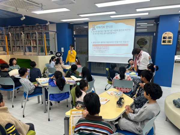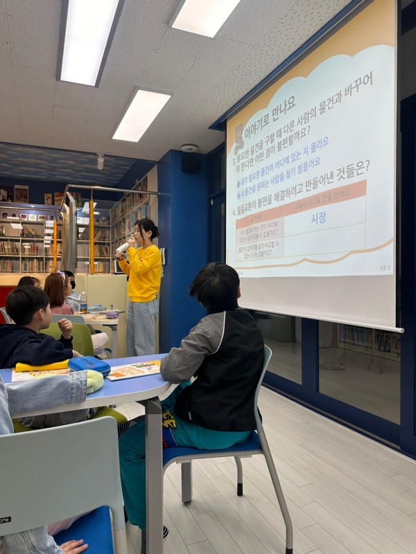 각자 자기소개를 한 후, '사라진 돈'이라는 이야기를 아이들과 함께 읽으며 이론교육과 게임을 진행하였습니다. 이 과정을 통해 아이들은 물물교환의 어려움을 배우며, 활동에 열심히 참여하려고 노력했습니다. 아이들이 생각보다 또박또박 글을 잘 읽어서 수월하게 수업이 진행되었습니다. 일부 친구들이 수업에 관심 없는 모습을 보여서, 더 활발한 참여를 유도하는 질문과 보상하였습니다. 또한, 학생 한 명이 책이 없어서 책을 복사한 후 수업을 진행했고, 현장의 초등학교 선생님의 도움으로 수업이 더욱 수월했습니다.