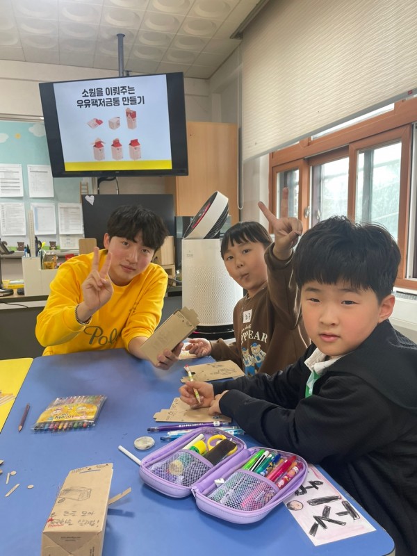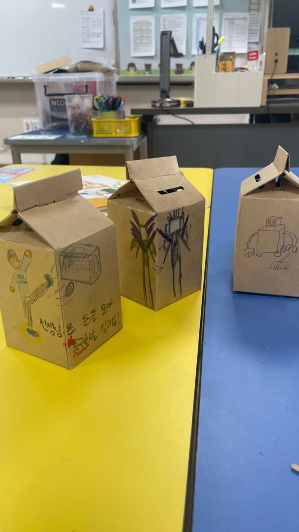 '저금통 만들기'를 하며 아이들이 저축을 통해 돈을 모아 나중에 하고 싶은 것으로 저금통을 꾸며보았습니다. 또한, 개인적으로 준비한 경제.금융 관련 '스무 고개 게임'을 통하여 아이들과 즐거운 수업을 진행 할 수 있었습니다.