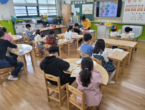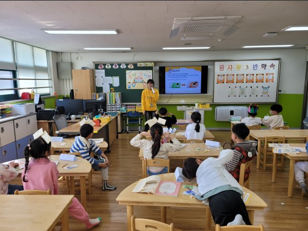 복소윤 단원이 주교사로 수업을 진행하였고, 김민균 단원이 보조교사 역할을 맡아서 아이들의 참여를 독려하였습니다.