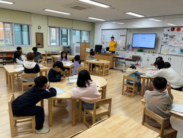 1교시는 ‘단정한 마을의 단정한 시쿠리니 씨’ 책을 읽어주는 시간을 가졌습니다.
