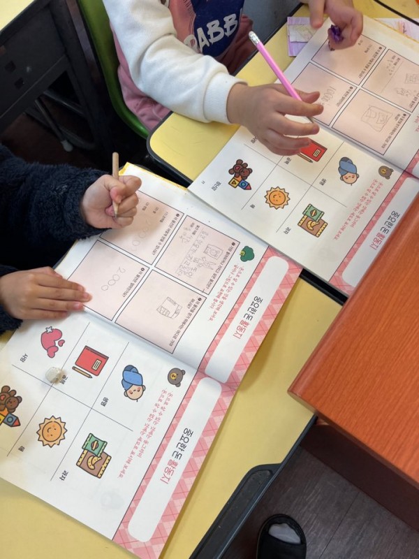 고학년과 저학년이 섞여 있어 진도 차이가 발생하는 문제점이 있었습니다. 고학년 아이들에게 지속적으로 질문을 하거나, 활동지를 더 열심히 꾸미고 그려보자고 격려하는 방식으로 진행했습니다.