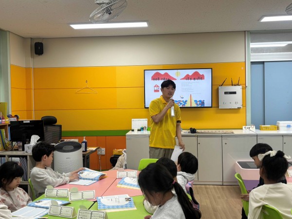 1교시에는 '단정한 마을의 단정한 시쿠리니씨' 동화를 함께 읽었습니다. 책의 글씨가 작은 관계로 원유진단원이 아이들에게 읽어주었습니다. 책을 읽은 후에는 아이들이 책에 집중을 잘 했는지, 이해는 했는지 확인하기 위해 책 내용과 관련된 질문을 활동지를 활용해 물어보았고 아이들의 이해도를 확인했습니다.