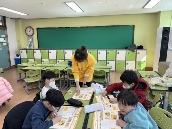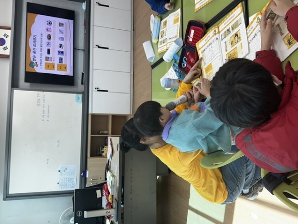 장하윤 단원이 보조를 맡아주었습니다. 학생들에게 교재와 교구를 나눠주고, 피피티 자료 등을 넘겨주었습니다. 또 활동시 어려움이 있는 학생들을 일대일로 맡아 설명을 따로 해주어 원활하게 수업을 진행할 수 있었습니다. 정답을 맞힌 학생들에게 빠짐없이 간식을 나눠주어 수업이 원활하게 흘러갈 수 있도록 도와주었습니다.